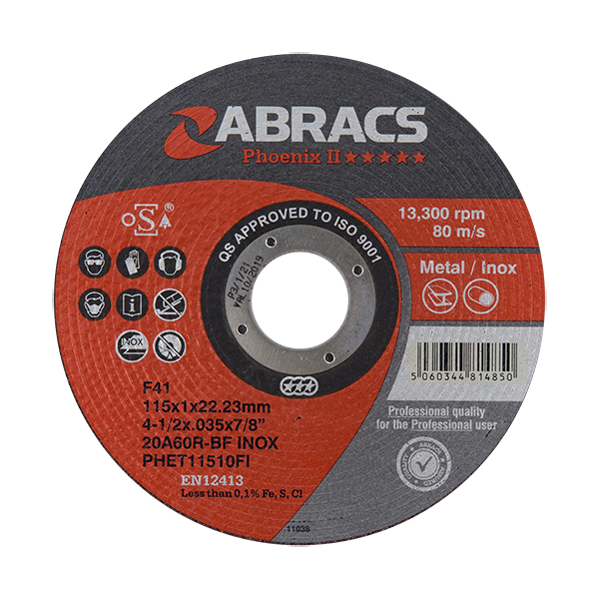 ABRACS Phoenix Extra Thin Flat Cutting Disc 115 x 1.0 x 22mm Pack of 10