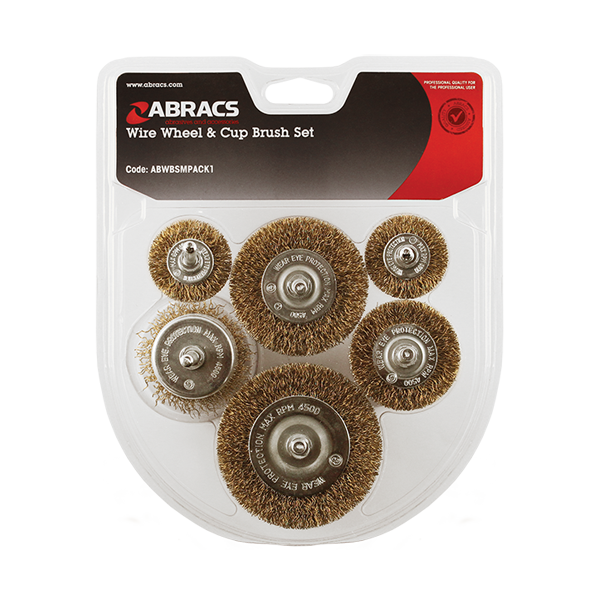 Contents: 2x 40mm circular brush, 1x 50mm circular brush, 1x 60mm circular brush, 1x 75mm circular brush and 1x 50mm cup brush.