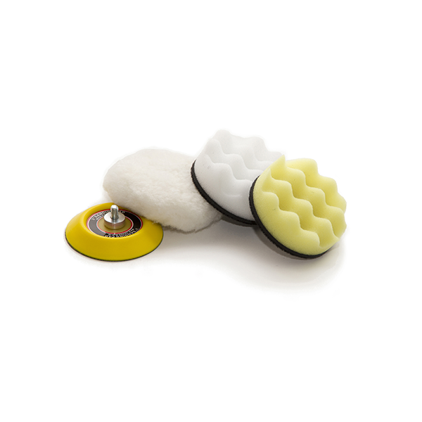 3 x 75 mm (3″) Buffing Pads: Lambs wool, sponge pad (white), sponge pad (yellow).1 x Backing Pad: 75 mm (3″).