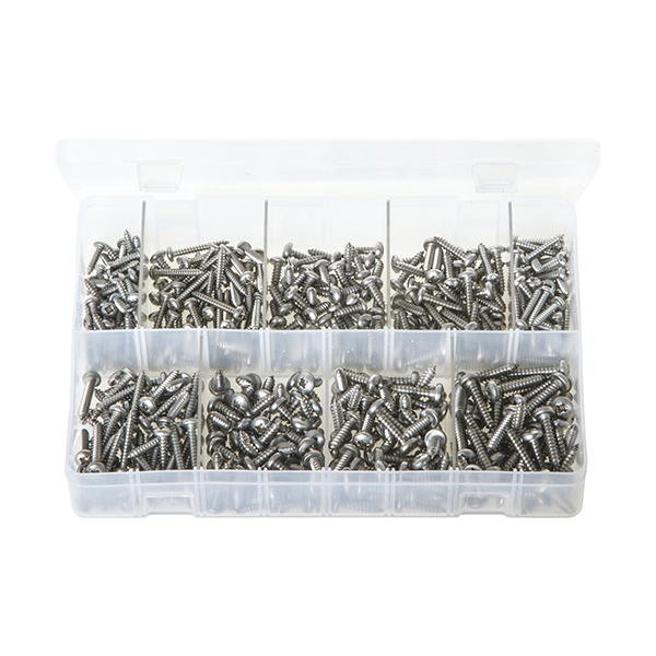 3 x No. 6: x 1/2″, 3/4″, 1″.3 x No. 8: x 1/2″, 3/4″, 1″.3 x No. 10: x 1/2″, 3/4″, 1″.